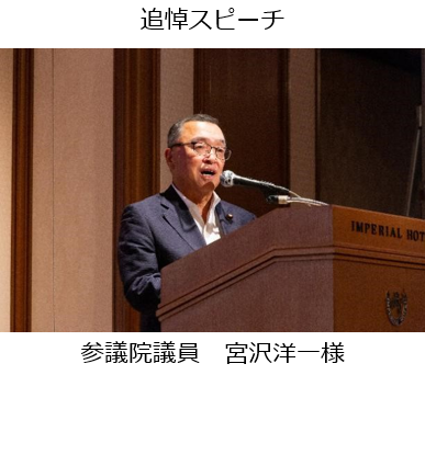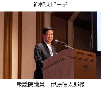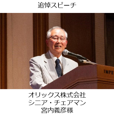 当日は、献花や黙とう、開会のあいさつとメッセージ、献杯ののち、NHKと国際交流基金が本レセプションのために制作した動画*の上映や、国内外からの参列者による追悼スピーチ、海外からのビデオ・メッセージの上映、ご家族からのあいさつ、追悼文集の配布などが執り行われました。